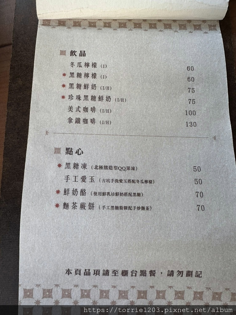 店內主打黑糖專賣,項目有:飲品 點心 剉冰 冰沙